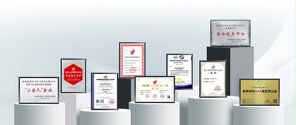 公司自2009年起被持续评定为“国家高新技术企业”,并获得国家级专精特新“小巨人”企业、“浙江省科技型中小企业”、“浙江省专利示范企业”、“省级高新技术企业研究开发中心”、“浙江省AA级守合同重信用企业”、“浙江省绿色低碳工厂”等国家级、省级荣誉称号。公司严格按IATF16949管理体系、ISO9001质量管理体系、ISO14001环境管理体系、ISO45001职业健康安全管理体系运行。